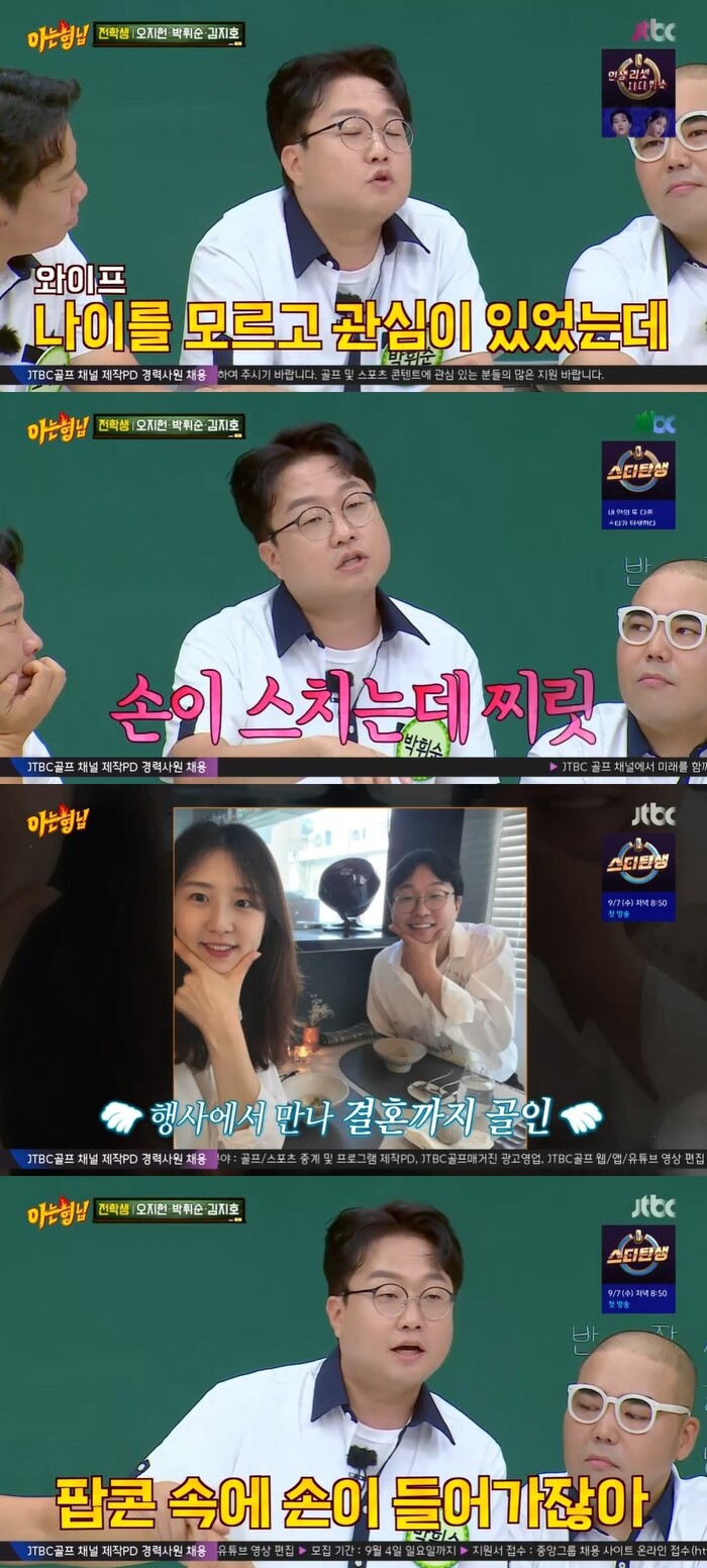 언급했다. 이에 "영화관을 갔는데 팝콘을 먹는데 손이 스쳤고 손이 찌릿찌릿하더라"며 첫 데이트를 언급했다.