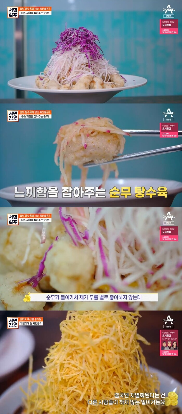 이렇듯 사람들의 눈과 입을 사로잡은 강현 씨의 비결은 바로 강화도 특산물 덕분이다. 당도가 높은 속노랑 고구마를 얇게 튀겨 올린 강화 속노랑 간짜장을 시작으로 아삭한 강화의 순무를 채로 썰어 산더미처럼 얹은 순무 탕수육, 강화 생새우 동백하를 넣어 끓인 시원한 맛은 살리고 아낌없는 해산물을 쌓아 올린 백 짬뽕, 그리고 강화도 섬 쌀로 볶아낸 섬 쌀 볶음밥까지 다양했다.