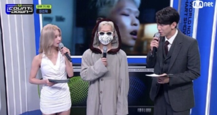 하얀 마스크를 쓰고 나타난 이찬혁은 그러나 MC 남윤수, 미연과 사전 인터뷰를 진행할 때 침묵을 해 눈길을 끌었다.