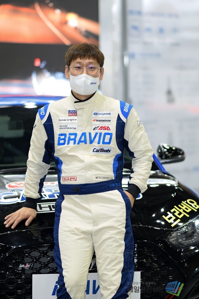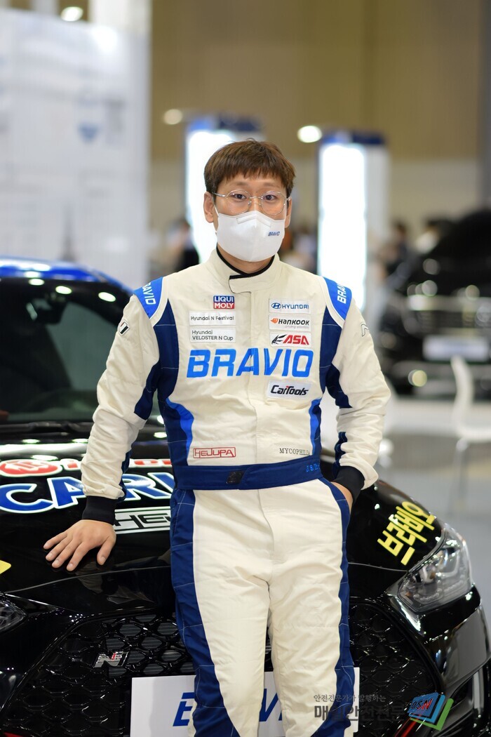 | ▲2022 서울오토살롱 '브라비오'부스에 참석한 유준선 드라이버 사진(사진:김진섭기자) |