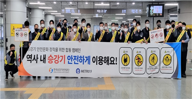 지난 5월 4일, 서울시메트로9호선㈜(대표이사 배현근, 이하 ‘9호선’)과 한국승강기안전공단(서울지역본부장 송성철)은 지하철을 이용하는 시민고객이 안전하게 승강기를 이용하고, 시민고객의 승강기 이용문화를 개선하고자 ‘승강기 안전이용 수칙’ 캠페인을 개최하였다.