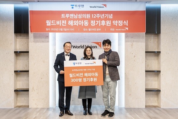 국제구호개발 NGO 월드비전(회장 조명환)은 지난 7일 여의도 본부에서 트루맨 남성의원과 정기후원 약정식을 가졌다고 밝혔다.