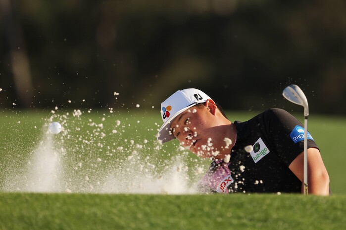 | ▲임성재 선수가 7일(현지시간) 미국 조지아주 오거스타의 오거스타 내셔널 골프클럽(파72)에서 열린 마스터스 대회 1라운드 경기에서 파4의 18번 홀 경기 도중 세컨드 샷이 벙커에 빠지자 절묘한 벙커샷으로 볼을 그린으로 올리고 있다. 임성재는 이 홀에서 파를 지켜내 5언더파 단독 1위를 지켰다. /오거스타=AFP연합뉴스 |