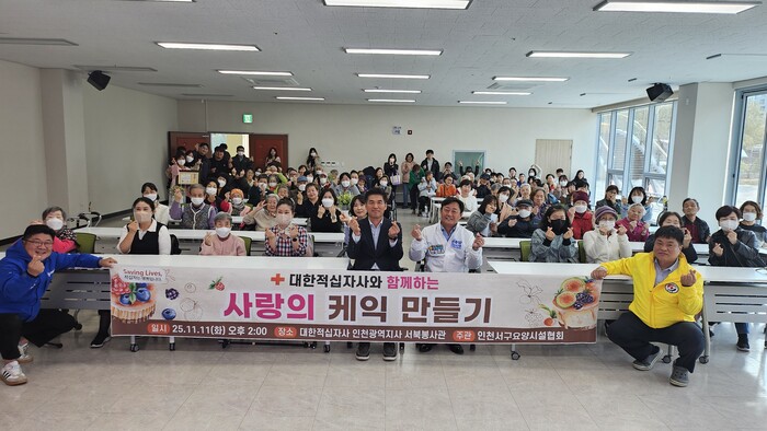 [매일안전신문=김진섭 기자] 대한적십자사 인천지사가 서북봉사관에서 인천서구요양시설협회 사회복지사 및 요양보호사들과 치매어르신을 모시고 케이크 만들기 행사를 진행했다.