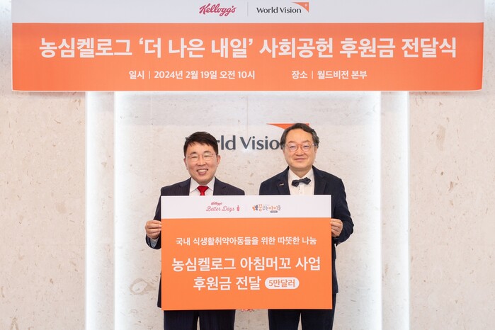 [매일안전신문=김진섭 기자] 농심켈로그가 3년 연속 '아침머꼬' 캠페인을 전개하며 켈로그 글로벌 펀드로부터 지원받은 기금 5만 달러를 월드비전에 전달했다.