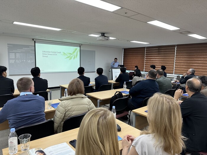 | ▲리투아니아신협중앙회 시기타스 붑니스 부회장이 신협중앙회 서울사무소에서 리투아니아신협에 대해 소개하고 있다. (사진=신협) |