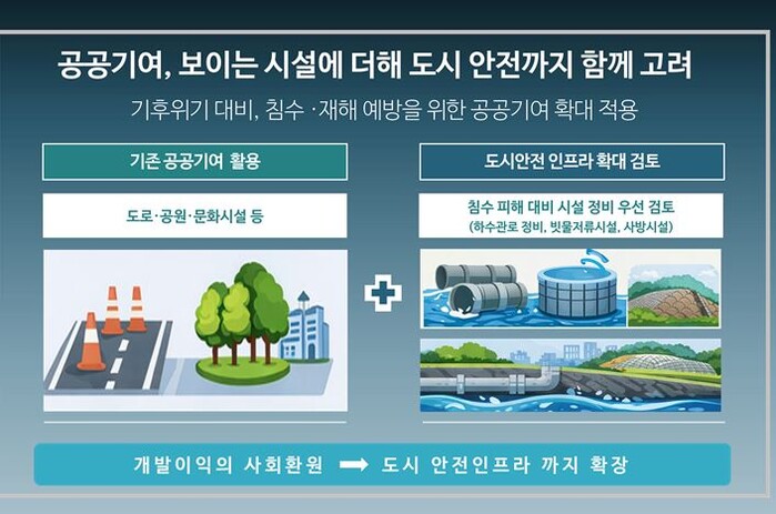 최근 서울.수도권 지역 시간당 100mm를 넘는 폭우로 침수 피해가 반복됨에 따라 시는 사후 복구가 아닌 예방 중심의 도시 안전 인프라 구축이 필요하다 보고 시설 확충에 ‘공공기여’를 활용키로 했다고 설명했다.