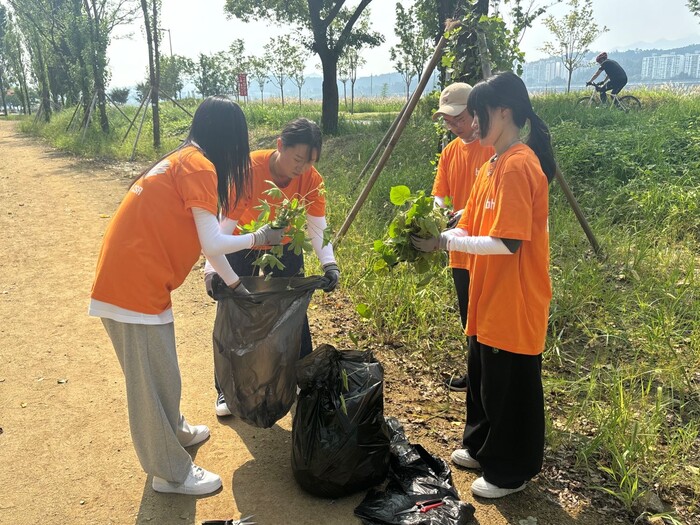 이날 단원들은 한강공원 곳곳을 돌아다니며 장마철 집중호우를 지나며 급격히 번식한 '단풍잎돼지풀', '서양등골나물’, ‘가시박’, ‘환삼덩굴’ 등 다양한 생태교란식물을 제거하는 정화 작업을 수행했다. 뿐만 아니라, 시민들이 공원을 보다 쾌적하게 이용할 수 있도록 산책로 주변의 쓰레기를 수거했다.