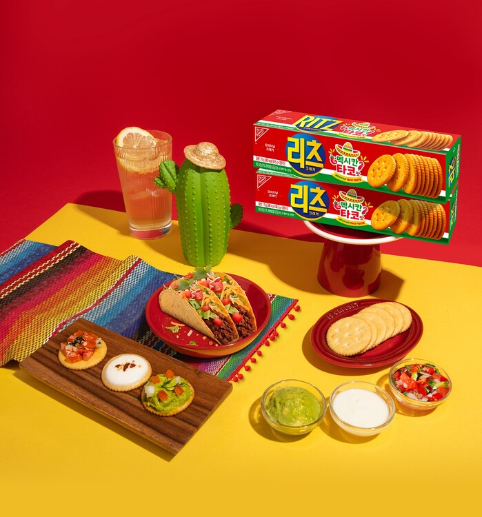 ‘리츠 크래커 멕시칸 타코맛’은 크래커에 타코 시즈닝과 하바네로향 시즈닝을 넣어 타코 특유의 바비큐 맛과 은은한 매콤함을 구현한 것이 특징이다. 이번 신제품은 2030 세대에서 트렌디한 음식으로 자리잡은 ‘타코’를 크래커에 접목해 즐길 수 있도록 기획됐다.