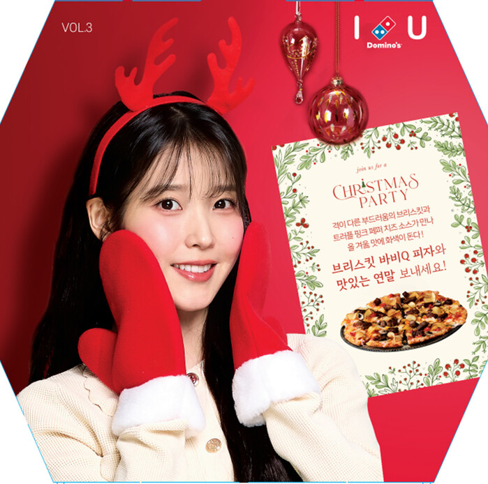도미노피자는 연말 및 크리스마스를 앞두고 최근 아이유 피자박스 VOL 3을 런칭했다. 이 피자박스는 연말 느낌을 강조한 새로운 아이유 사진과 더불어 지난달 17일 출시한 ‘브리스킷 바비Q’를 소개하며 소비자들의 이목을 끌 것으로 기대된다. 이와 함께 도미노피자의 모든 L 사이즈 피자를 2회 이상 주문한 온라인 회원 중 선착순으로 아이유 캘린더 2종(탁상형, 브로마이드형)을 제공하는 프로모션도 진행 중이다.