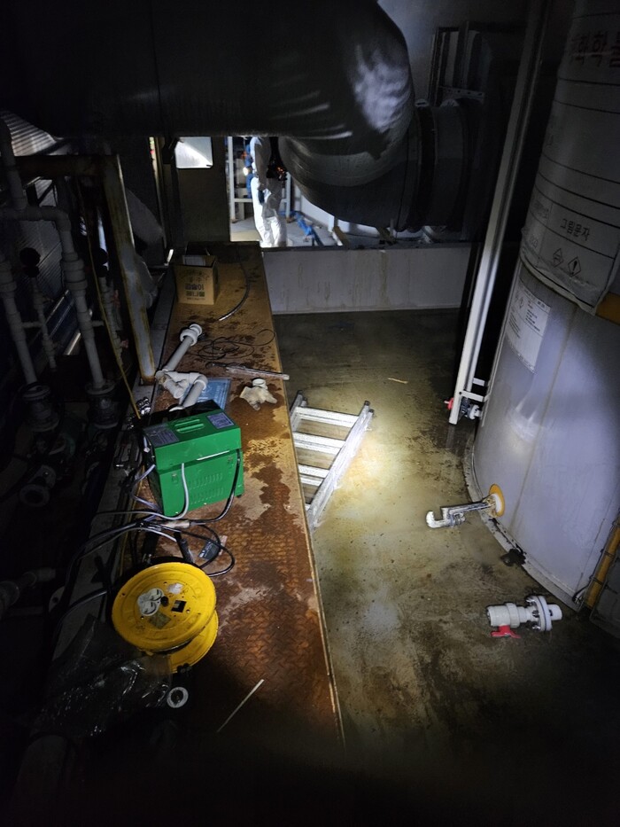 이 사고로 60대 근로자 2명이 얼굴에 화상을 입는 등 다쳐 병원으로 이송돼 치료를 받았다.