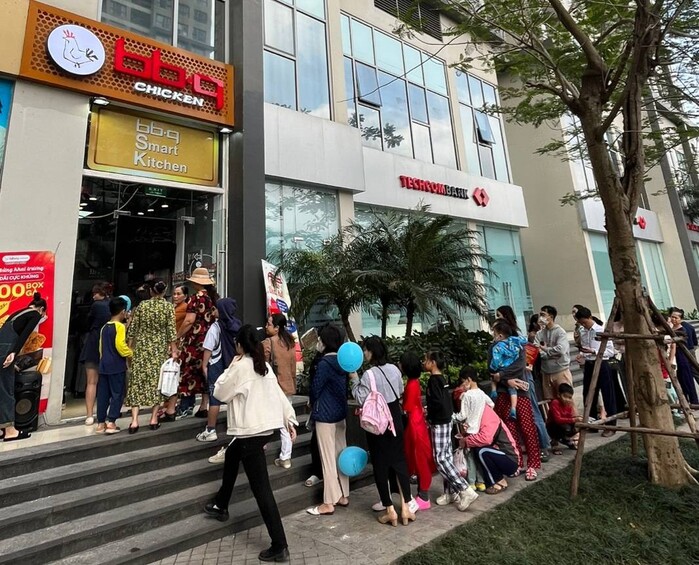 | ▲BBQ가 베트남 하노이에 배달·포장 전문 BSK(BBQ Smart Kitchen) 타입으로 오픈한 ‘BBQ 가드니아점’에서 현지 시민과 관광객들이 BBQ 치킨을 포장 주문하기 위해 길게 줄서서 기다리고 있다 (사진=BBQ) |