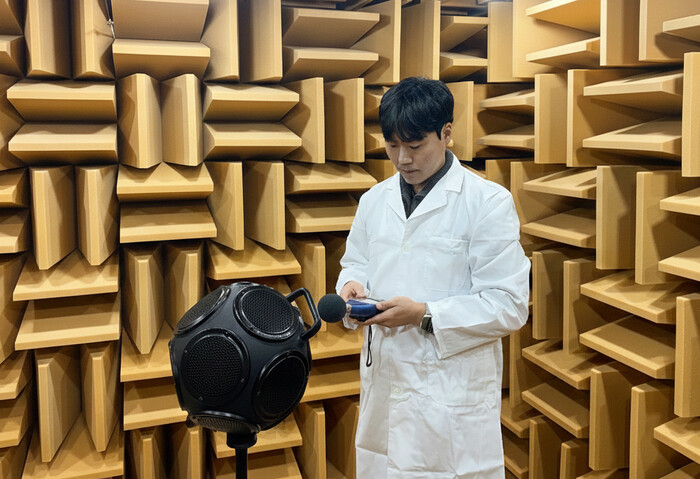 | ▲FITI시험연구원 연구원이 소음 환경측정기기 검사를 진행하고 있다. (사진=FITI시험연구원 제공) |