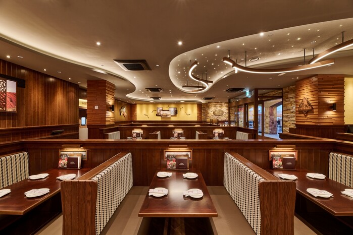 매장은 호주의 광활한 대자연을 콘셉트로 하고 있다. 울룰루, 스타라이트, 그레이트빅토리아 사막 등 상징적인 요소를 활용해 마치 호주를 여행하는 듯한 독창적이고 생동감 넘치는 분위기를 연출했다. 각 좌석은 호주 대륙을 횡단하는 ‘오프로드 트립(Off Road Trip)’ 열차 콘셉트를 적용해 식사를 하는 동시에 미식 여행을 떠나는 듯한 즐거움을 제공한다. 또한, 매장 입구는 아웃백의 시그니처 디자인인 ‘그린 캐노피’로 꾸며졌다.