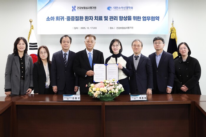 건강보험심사평가원이 대한소아신경학회와 지난 17일 서울 심사평가원 전문가자문회의장에서 ‘소아 희귀·중증질환 환자의 치료 및 관리 향상’을 위한 MOU을 체결했다고 18일 밝혔다.