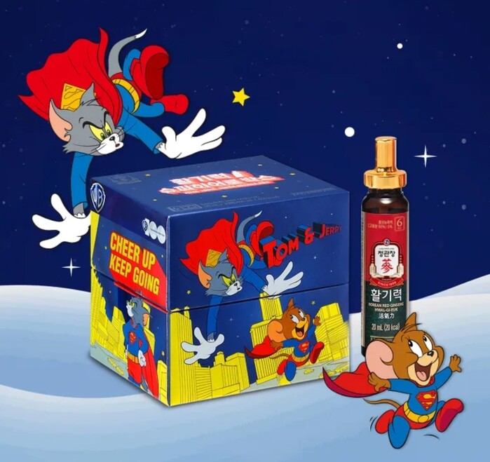 [매일안전신문=김진섭 기자] 정관장이 워너브라더스의 인기 애니메이션 캐릭터인 ‘톰과 제리’와 컬래버한 ‘활기력 슈퍼히어로박스(톰과제리편)’를 선보였다.