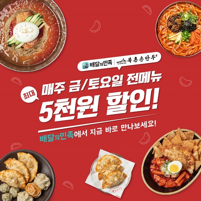 북촌손만두에 따르면 ‘배달의민족’ 브랜드 할인을 통해 진행되는 이번 프로모션은 ‘브랜드관’과 ‘브랜드찜’에서 쿠폰을 다운로드 받아 주문 시, 즉시 사용 가능하다.