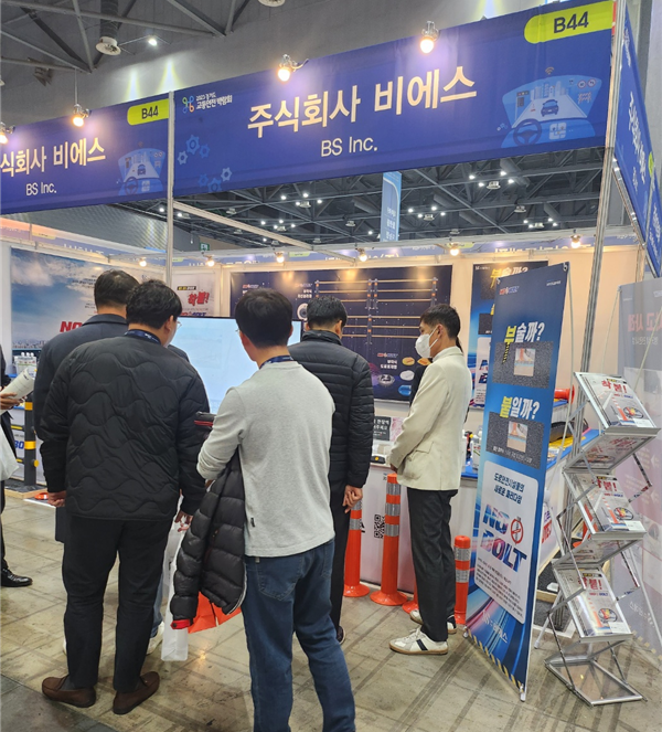 도로안전시설물 연구개발 기업 ㈜비에스가 운영하는 노볼트가 ‘2023 도로교통박람회’에서 ‘부착식 카스토퍼’ 등을 소개하며 차세대 도로안전시설물로 눈길을 끌었다. ㅏ
