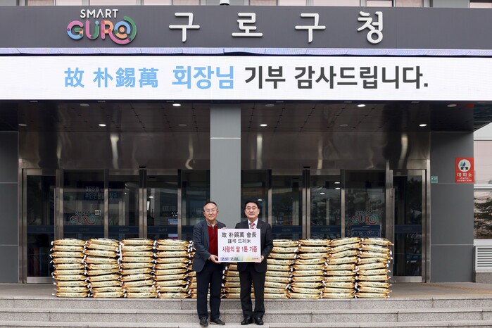 노 대표는 전달식에서 “장인어르신 장례에 조문객들이 화환 대신 보내온 근로 드리미 쌀 화환의 쌀을 생전 고인의 뜻에 따라 구로구 관내 어려운 독거 어르신들을 위해 기부하게 됐다”고 말했다.
