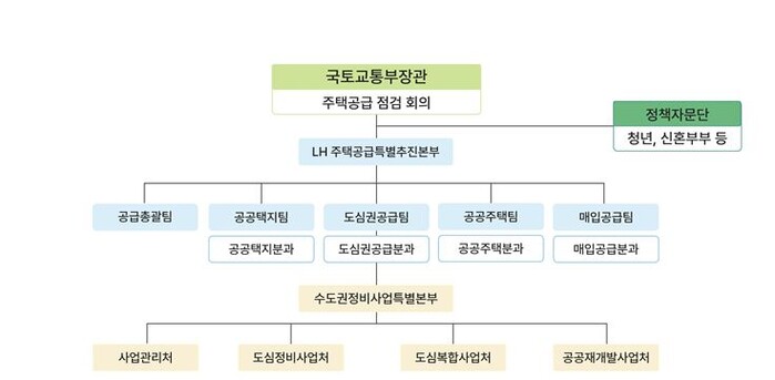 김 장관은 국토부와 LH 조직을 ‘주택공급 비상 체계’로 전환할 것을 주문했다. 국토부는 공공주택추진단 등으로 분산된 공급 기능을 통합·강화하는 방안을 관계 부처와 협의 중이며, LH는 사장 직무대행이 본부장을 맡는 ‘주택공급특별대책본부’를 즉시 신설하고 5개 전담팀을 꾸려 핵심 과제를 관리한다. 수도권 내 여러 도심 공급 사업을 추진할 ‘수도권정비사업특별본부’도 새로 만들어 정비사업을 전담한다.