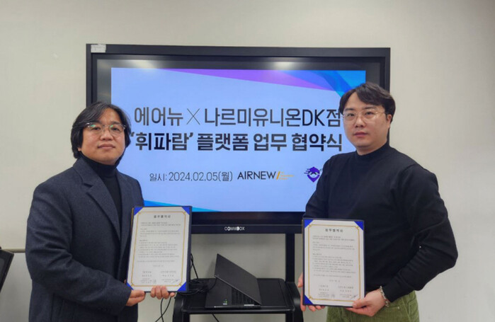 ㈜에어뉴 휘파람은 지난 5일 ‘나르미유니온 DK점’과 업무협약을 체결했다고 밝혔다.
