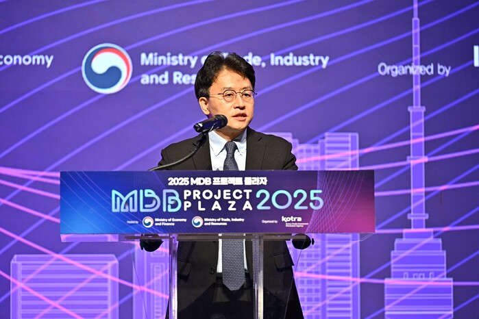 | ▲11월 25일 서울 JW 메리어트 호텔에서 열린 ‘2025 MDB 프로젝트 플라자’에서 문지성 기획재정부 개발금융국장이 개회사를 하고 있다. (사진=코트라 제공) |