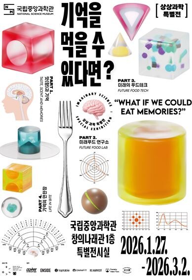 [매일안전신문=김진섭 기자] 국립중앙과학관이 겨울방학을 맞아 과학적 상상력이 미학적 체험으로 실현되는 과정을 그린 상상 과학 특별전 <기억을 먹을 수 있다면?(What If We Could Eat Memories?)>을 2026년 1월 27일부터 3월 2일까지 창의 나래 관 1층 기획전시실에서 개최한다.