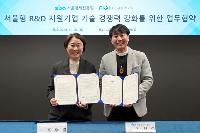 FITI시험연구원이 18일 서울경제진흥원과 SBA 본사에서 ‘서울형 R&D 지원기업 기술 경쟁력 강화’를 위한 업무협약을 체결했다고 19일 밝혔다.
