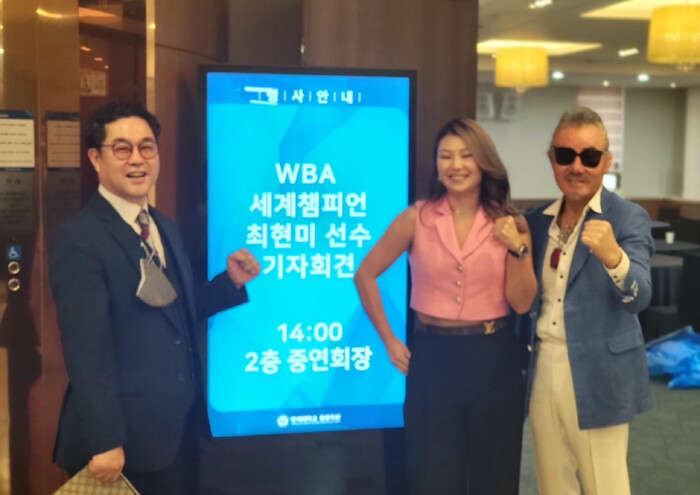 [매일안전신문=강수진 기자] 80년대 한국 복싱의 부흥기를 이끌었던 황춘재, 이춘길 챔프가 WBA 세계챔프 최현미 선수의 기자회견에 참석해 최 챔프를 응원했다.
