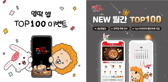 엽기떡볶이 모바일 앱에서 상위 100명의 고객을 선정해 할인쿠폰을 증정할 예정이다.