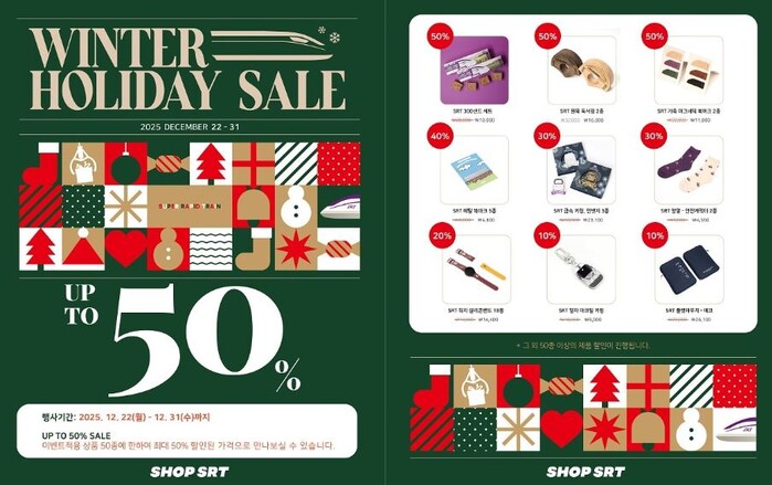 심영주 에스알 대표이사 직무대행은 “올 한 해 SRT 굿즈에 보내주신 성원에 보답하고자 풍성한 할인 혜택과 함께 일상 속 즐거움과 철도 감성을 더할 신제품을 준비했다.”라며, “이번 행사를 통해 연말 선물을 준비하는 고객에게 좋은 기회가 되고 많은 고객이 연말의 즐거움을 느끼길 바란다.”라고 밝혔다.