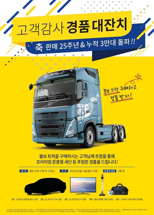 볼보트럭코리아가 판매 25주년을 기념하여 고객들에게 추첨을 통해 다양한 경품을 증정할 계획이다.