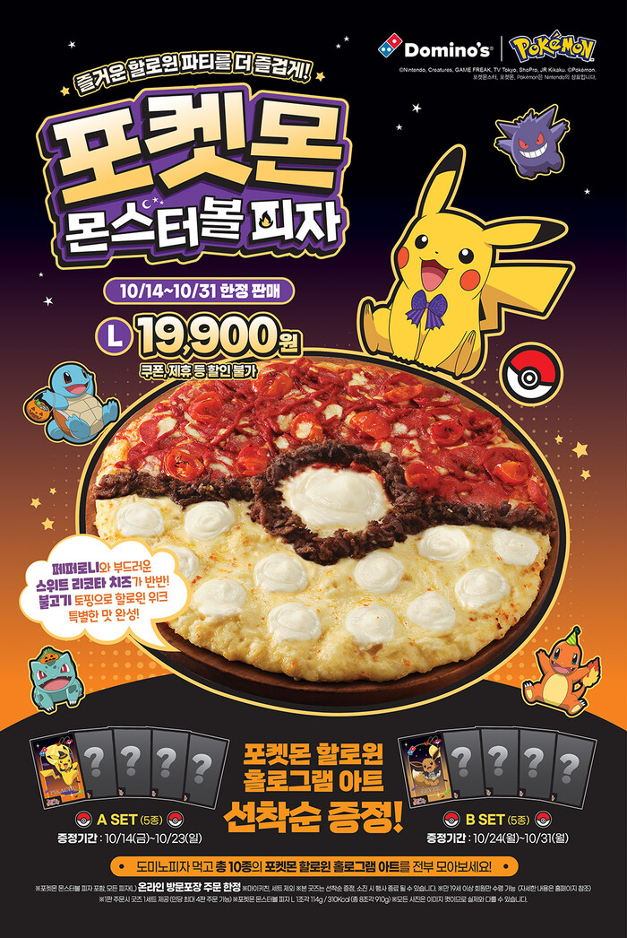 한편 도미노피자 관계자는 “할로윈을 맞아 맛뿐만 아니라 보는 재미까지 더한 ‘포켓몬 몬스터볼 피자’를 오는 14일 출시한다”라며, “이번 할로윈은 포켓몬 몬스터볼 피자와 함께 즐거운 시간 보내길 바란다”라고 말했다.