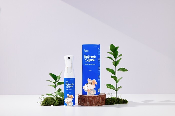 두 번째 제품은 ‘리프레쉬 시그널(Refresh Signal)’로 반려견의 스트레스 완화 및 면역력 향상에 도움을 주는 테라피드(Therapide) 성분이 들어간 기능성 탈취제이다.