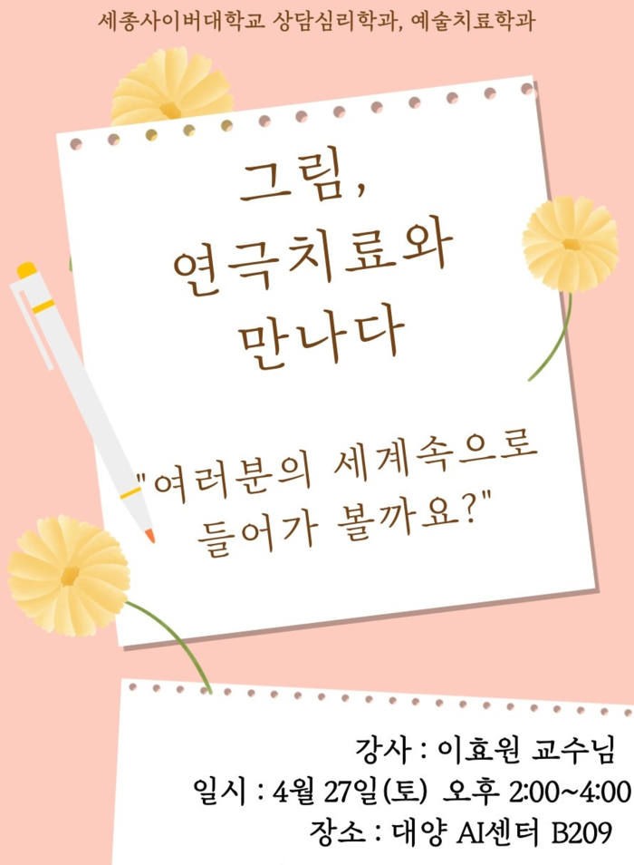 세종사이버대학교 상담심리학과와 예술치료학과는 지난달 21일 재학생들을 위한 심리치료 특강을 개최했다고 밝혔다.