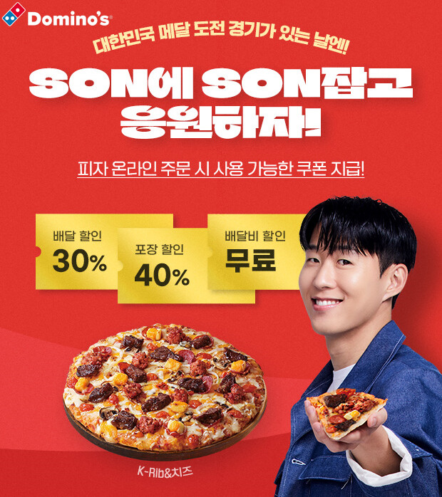 이와 함께 도미노피자는 오는 26일부터 내달 8일까지 모든 피자(L)를 온라인 배달, 포장 주문한 온라인 회원에게 손흥민 포토카드를 제공하는 이벤트도 함께 진행할 예정이다. 이번 손흥민 포토카드에는 지난 12일 출시한 신제품 ‘K-Rib & 치즈 피자’를 들고 있는 손흥민부터 시그니처 포즈를 한 모습의 손흥민을 담은 총 5종으로 그중 랜덤으로 1종을 지급한다.