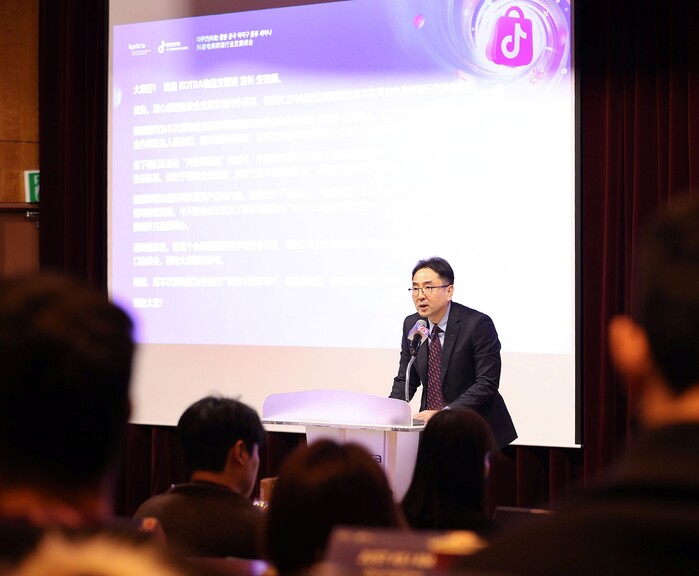 대한무역투자진흥공사가 더우인(Douyin, 중국 틱톡)의 해외사업 총괄책임자를 단장으로 구매책임자, 벤더사, 인플루언서 등 90여 명으로 구성된 구매단을 대거 초청해 23일 서울 본사에서 ‘더우인 활용 중국 역직구 물류 세미나’를 개최하고, K-소비재 기업의 중국 내수시장 진출을 위한 물류·마케팅·라이브커머스 원스톱 지원사업에 나선다고 26일 밝혔다.