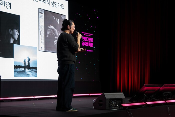 예측 불가능한 서사 세션에서는 이재국 작가가 케이팝 세계관과 가사 서사 구조를 분석했고, 이진호 영화감독은 다양한 AI 기반 영화 제작 사례를 통해 AI 시대의 새로운 서사 가능성을 제시했다. 이어 영화수입배급사 ‘찬란’의 이지혜 대표는 다양성 영화가 갖는 독립성과 가치를 설명하며 발표를 마무리했다.