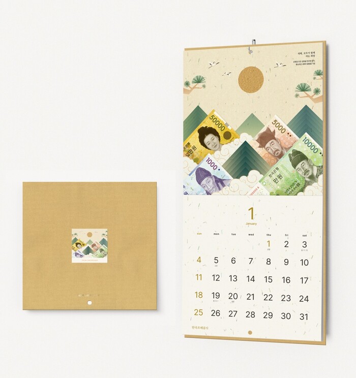 프리미엄 돈달력은 화폐 속 인물과 유적을 통해 한국 문화와 역사를 재해석한 스토리텔링 콘셉트로, 내지에는 화폐 부산물로 만든 친환경 용지를 사용해 ‘돈가루’를 육안으로 확인할 수 있다. 가격은 벽걸이형 22,000원, 탁상형 18,000원이다.