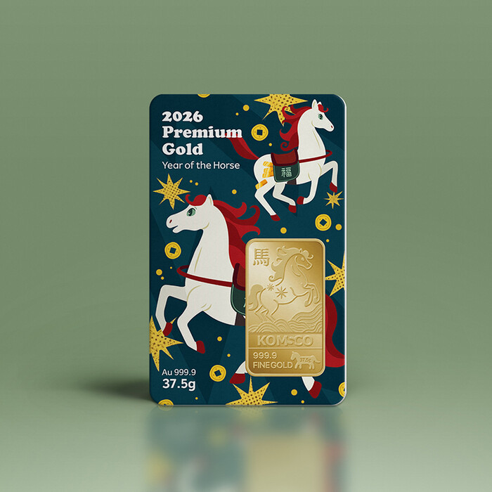 ‘2026 말의 해 카드형 골드’는 중량 37.5g, 11.25g, 3.75g, 1.87g 총 4종으로 출시되며, 국내유일 KRX 금시장 품질인증기관인 조폐공사가 순도 99.99%를 보증한다. 카드형 패키지는 세로형과 가로형 두 가지 타입으로 고중량(37.5g, 11.25g)과 저중량(3.75g, 1.87g)을 차별화했다.