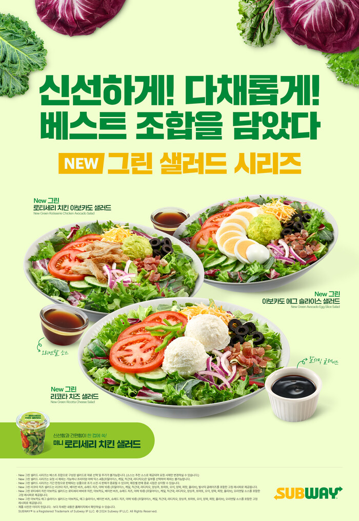 | ▲써브웨이 신메뉴 ‘NEW 그린 샐러드 시리즈’ 포스터 (사진=써브웨이) |