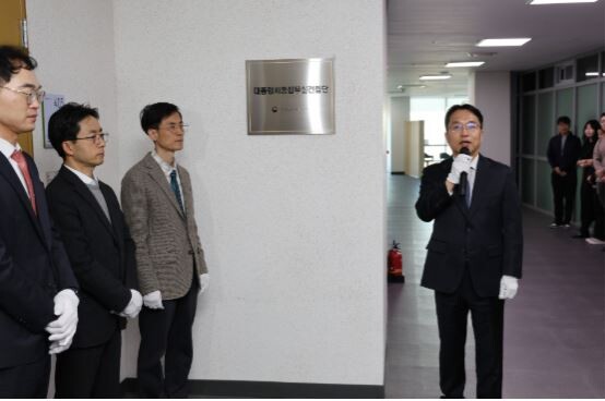 행정중심복합도시건설청이 행정수도 완성을 위한 핵심 과제인 ‘대통령 세종집무실’ 건립을 체계적으로 추진하기 위해 ‘대통령세종집무실건립단'을 신설하고 6일 현판제막식을 개최했다고 7일 밝혔다.