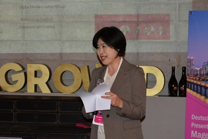 | ▲11월 18일 서울 에이치에비뉴호텔에서 열린 ‘도이치텔레콤 글로벌 오픈이노베이션’에서 김명희 코트라 부사장 겸 산업혁신성장본부장이 인사말을 하고 있다. (사진=코트라 제공) |