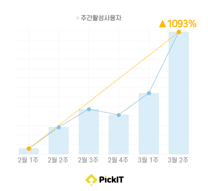 특히 2월 1주차 WAU와 3월 2주차 WAU만 비교하면 무려 1093%의 성장률을 확인할 수 있다고 설명했다.