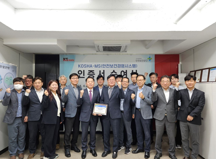 (주)케이에스메이트는 한국산업안전보건공단으로 부터 안전보건경영시스템 KOSHA-MS 인증을 획득했다고 밝혔다.