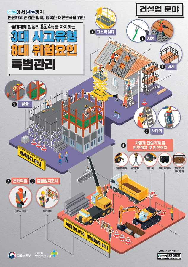 | ▲3대 사고유형 8대 위험요인(건설업 분야) (사진=고용노동부) |