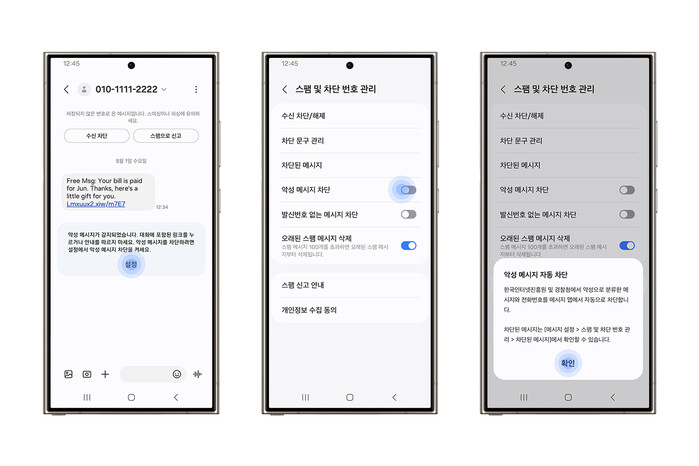 | ▲ 삼성전자가 KISA가 협력하여 '악성 메시지 차단 기능'을 선보인다(사진: 삼성전자 제공) |