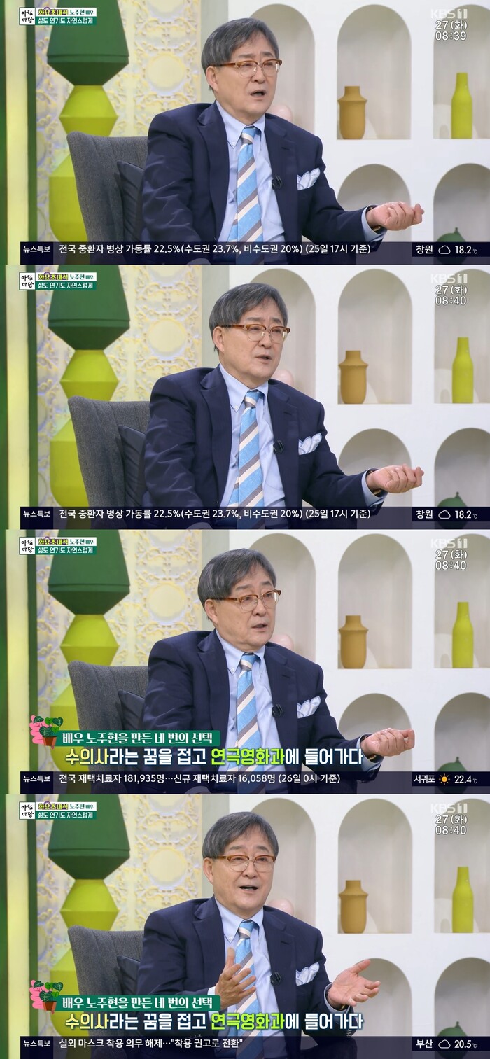 27일 오전 8시 25분 방송된 KBS1TV '아침마당 화요초대석'에서는 노주현의 등장이 그려졌다.