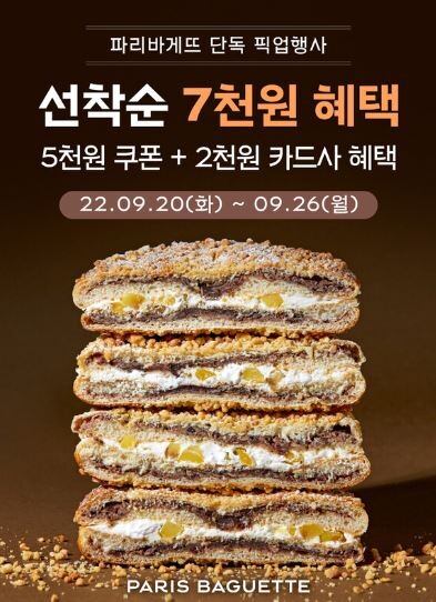 [매일안전신문=김진섭 기자]SPC 파리바게뜨가 가을을 맞아 선착순으로 7천원을 할인해주는 단독 픽업행사를 마련했다.