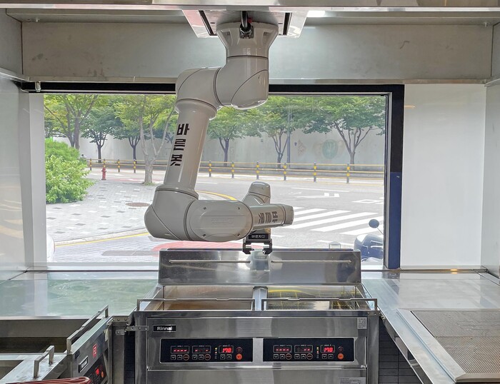 ‘바른봇’은 각 매장의 동선과 예측불가한 영업 환경에 맞춰 로봇의 모션을 조정할 수 있으며, 원격 접속 가능하다. 특히 강도 높은 치킨 조리 업무를 로봇이 수행함으로써 노동력 절감을 할 수 있다.